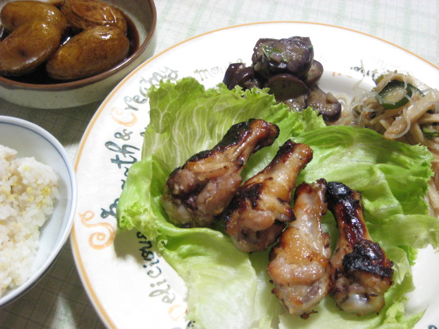 昨日の夕飯(8/28):手羽元の塩麹焼き他