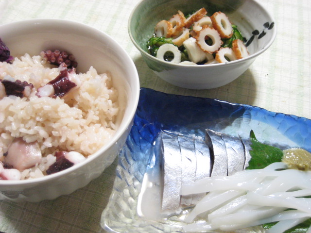 タコ飯、しめ鯖、いかソーメンは実家に行ったら、持って帰れと言われたものです(笑)