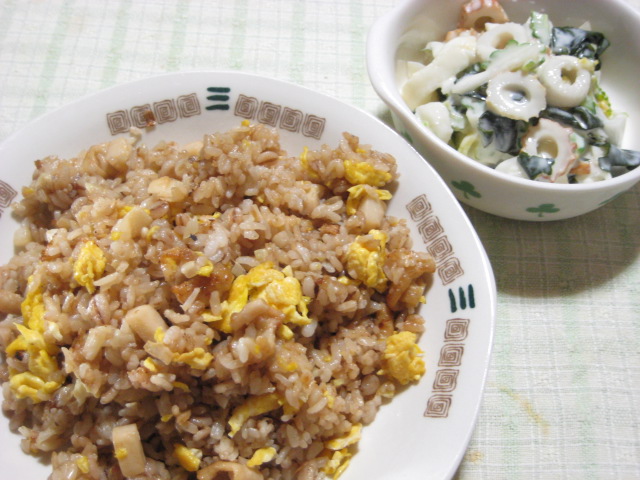 昨日の夕飯(9/2):鶏皮チャーハン他