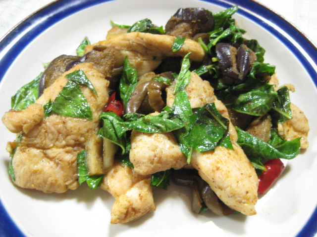 *ナスと鶏胸肉のバジルカレー炒め