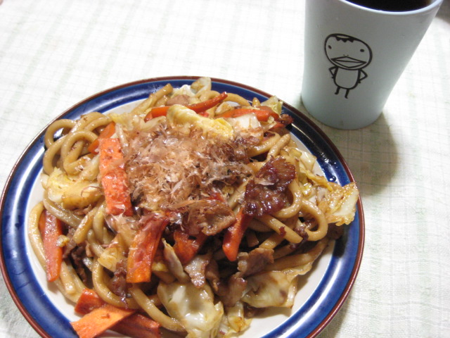 昨日の夕飯(8/16):焼きうどん