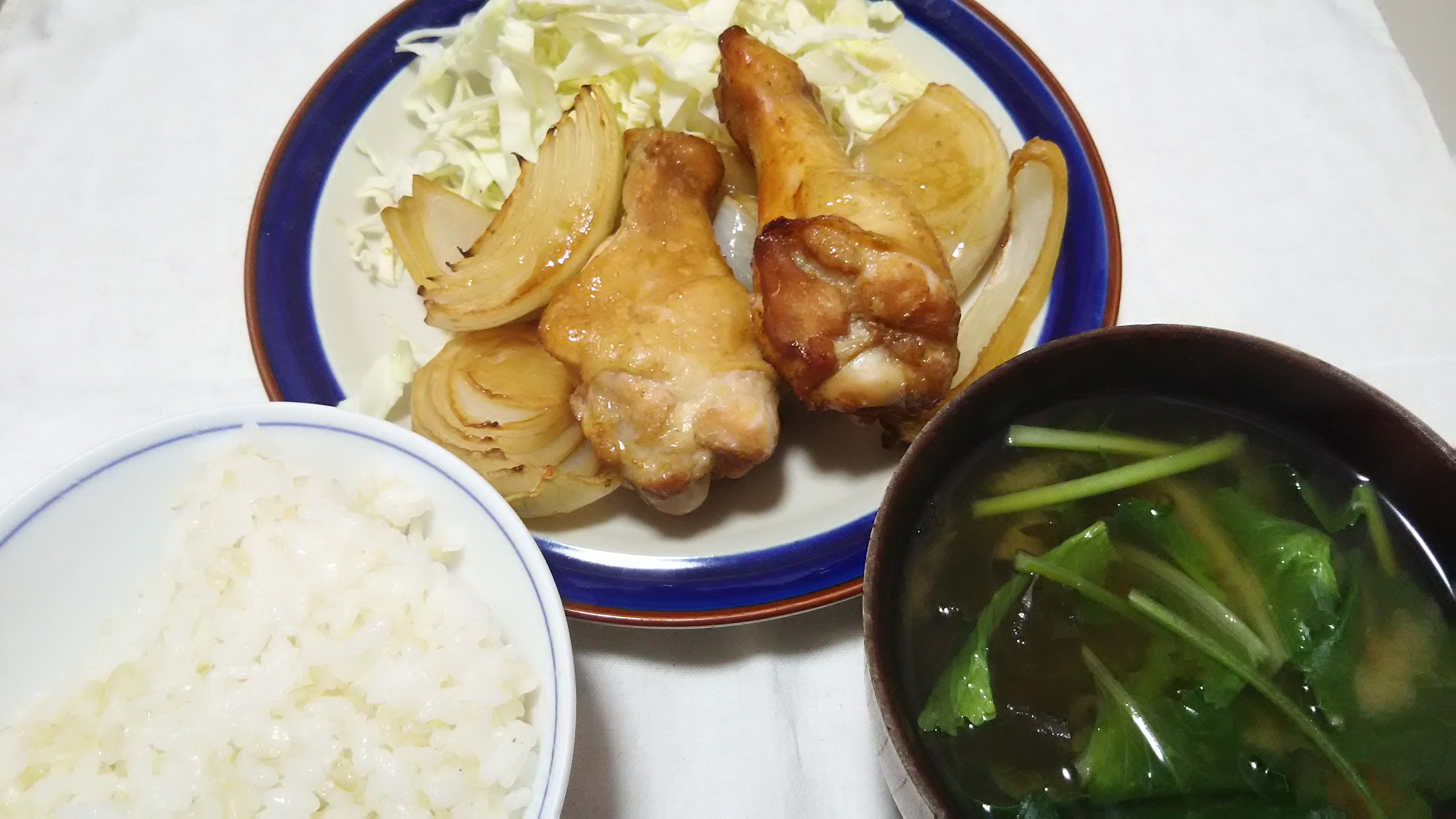 この日は手羽元を醤油ベースの調味液に漬け込んでオーブンでグリル。普段は肉のみで漬けるのですが、この日は玉ねぎも一緒に漬けて焼きました。味が薄くなるかなと思ったけど、悪くなかったです。