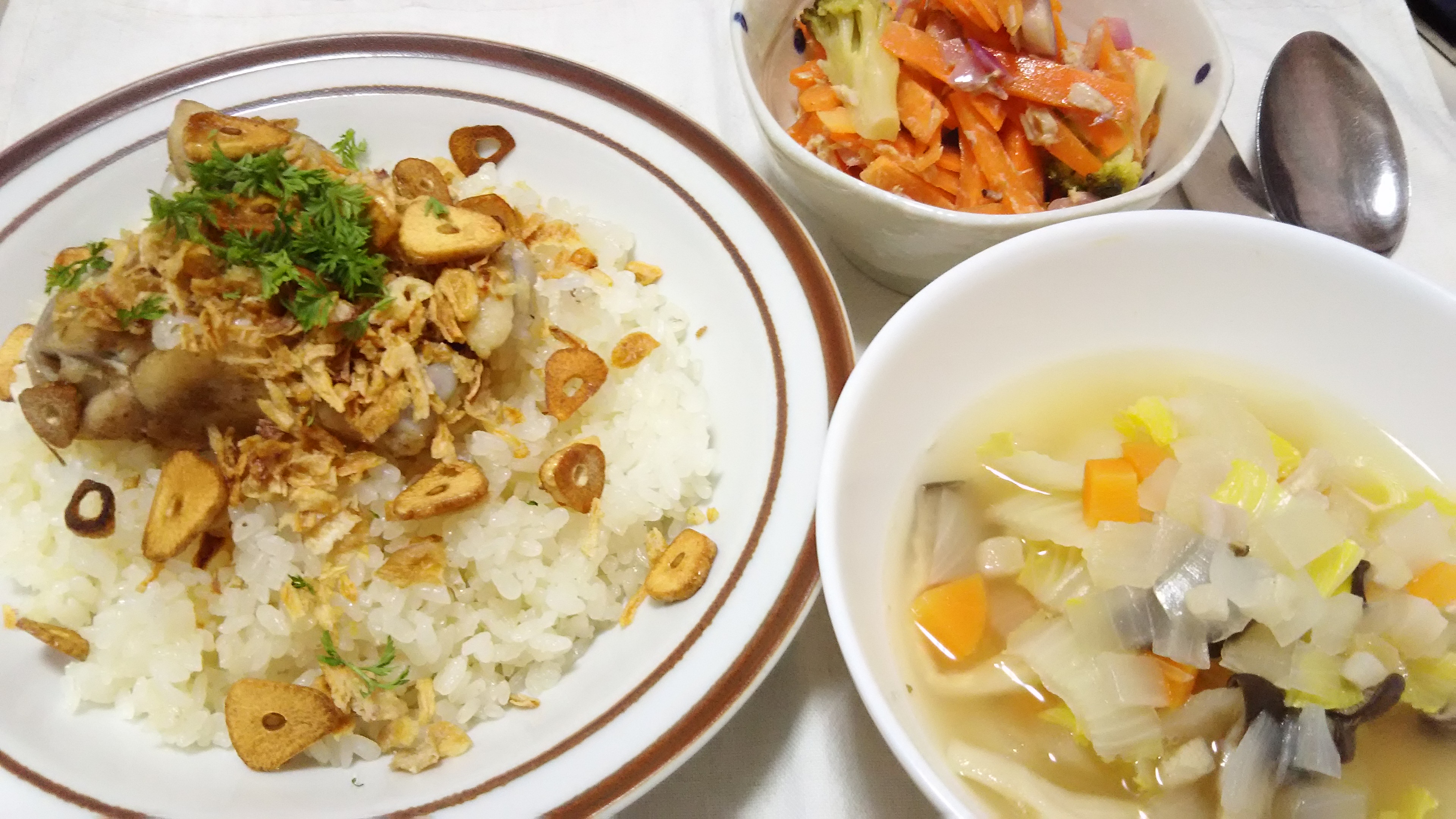 昨日の夕飯(1/19):シンガポール風チキンライス他