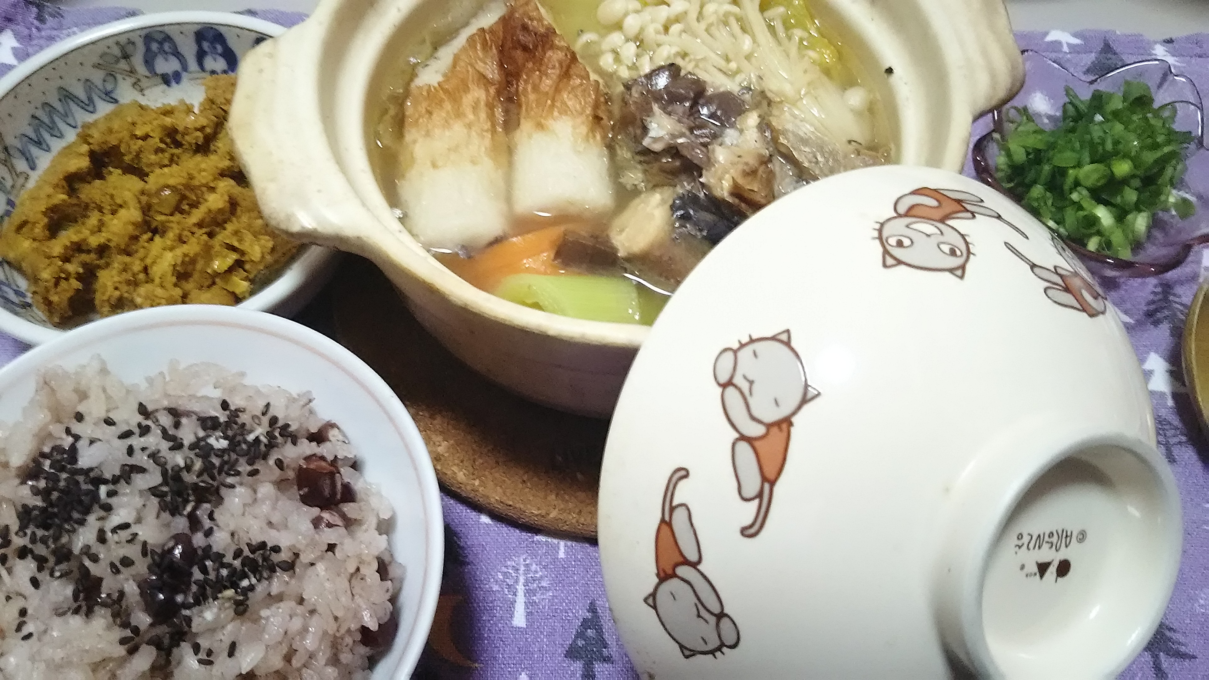 ご飯は赤飯。別におめでたいことがあったわけでもなく、ストックが出てきたので(苦笑)