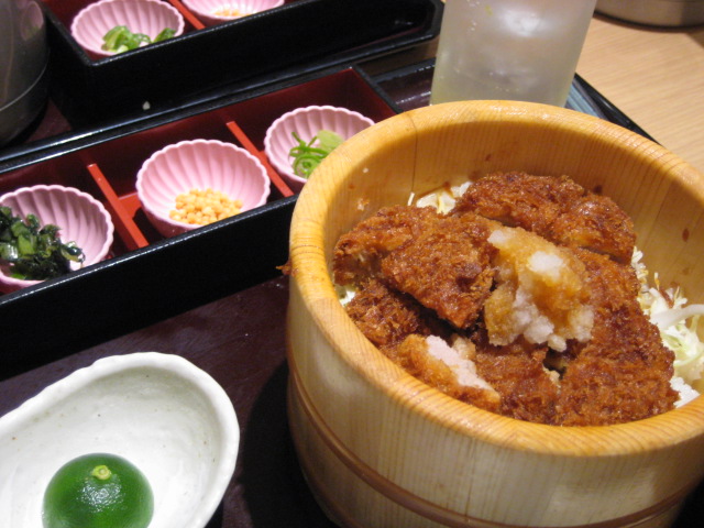 前は海鮮ものだったので、今回は肉で。おろしカツおひつご飯です。これもまた美味しかったですね~。やっぱりここはハズレがないなぁ。
