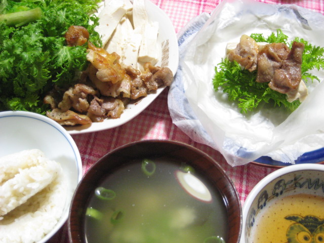 昨日の夕飯(3/31:)豚肉炒めのライスペーパー包み他