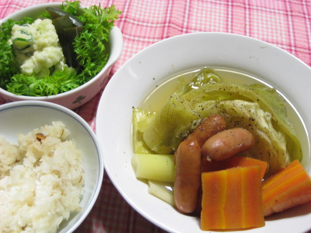 昨日の夕飯(4/3):ポトフ他