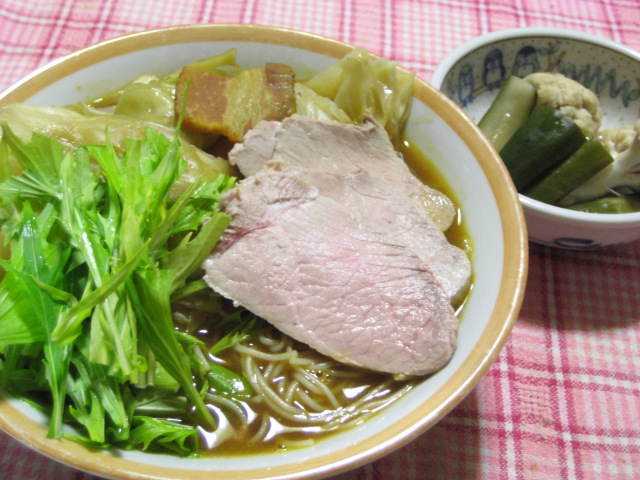 この日は前日のポトフが余っていたので、リメイクしてみました。当初は普通にスープカレーを作る予定だったのですが、他に残った食材との兼ね合いで、にゅうめんに仕立ててみましたが、意外に合いましたよ。