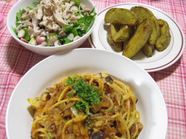 - 03/26 昨日の夕飯(3/25):炒めミートスパ他