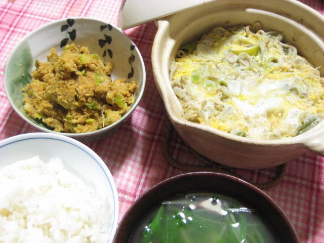 そんなこともあって、昨日は白飯を炊きました。でもって、おかずは冷凍庫のストック品から凍り豆腐としらすを引っ張り出して卵とじに。具材が多い分、普段よりも甘めにしてます。