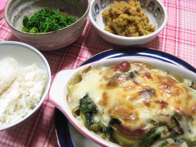 - 03/30 昨日の夕飯(3/29):ジャガイモと小松菜のグラタン他
