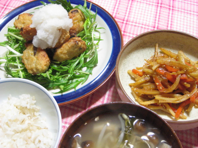 - 02/28 昨日の夕飯(2/27):鶏ゴボウ団子の大根おろしのせ他