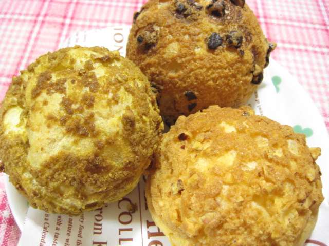 手前右から時計回りにカスタード、抹茶、チョコ。