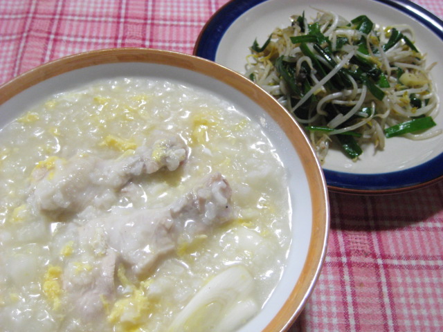 11月最後の夕飯はなんちゃって版の中華粥で。