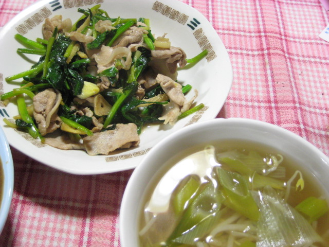 昨日の夕飯(12/4):ほうれん草と豚肉のニンニク炒め他