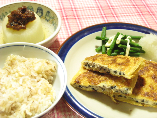 副菜はふろふき大根に肉味噌をトッピング。とはいえ、大根が思ったよりも硬かった・・・ちょっとしくじったかもw