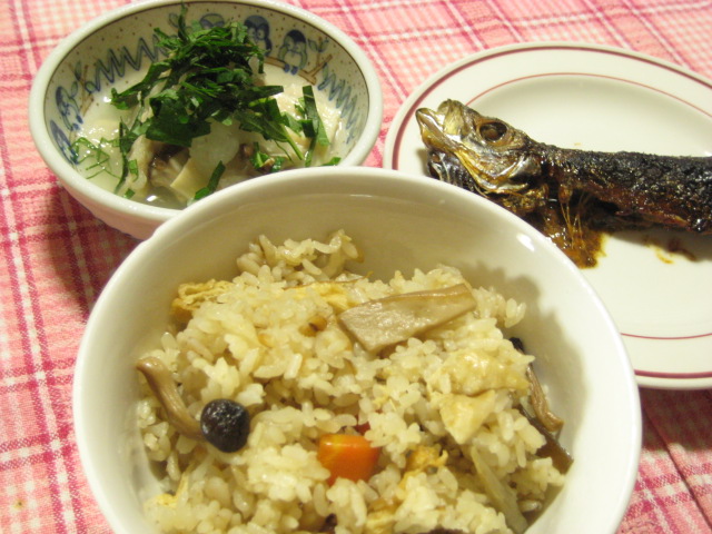 - 09/19 昨日の夕飯(9/18):干しきのこと鶏皮の炊き込みご飯他