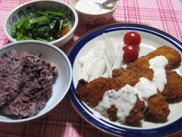 とはいえ、それだけではいけないので、小松菜のおひたしは作りました。あと、フライの添え物の野菜と・・・でも、まだ野菜少ないなぁ・・・反省。