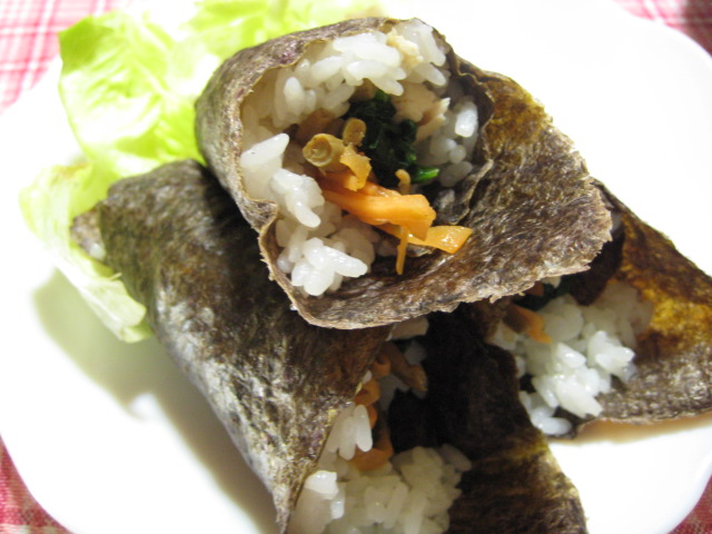 韓国にはキムパという海苔巻きがありますが、あっちは海苔が韓国海苔で、手で持ったまま食べようとすると、表面の油で手がベタベタになるので、こういう食べ方しにくいですよね。その辺りもこれだと焼き海苔なので食べやすいです。