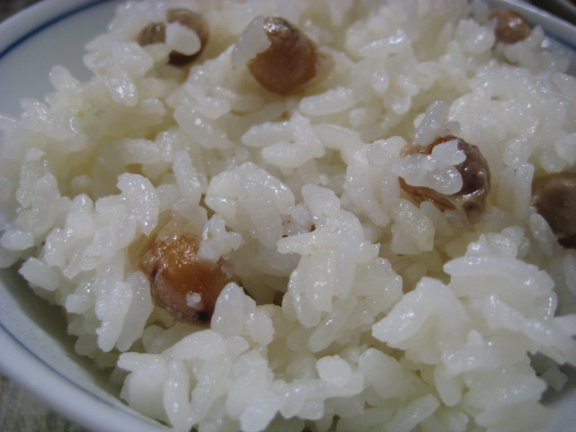 そんなわけで、100品目になるレシピは大豆の豆ご飯です。普通、大豆でこういったのを作ろうとすると一晩水に浸けた上に一旦下茹でしないといけないので、結構手間ということもあって大変ですよね。でも、豆は積極的に食べておきたい食品ですし、そうなるとどうしても水煮などの半調理品に頼ることになるんですが、この方法なら一晩もかからず、下茹でもなし。水煮品を買うよりも経済的です。ほんのり香ばしくてそのままは勿論、おにぎりにしてお弁当にしても合いますよ^^