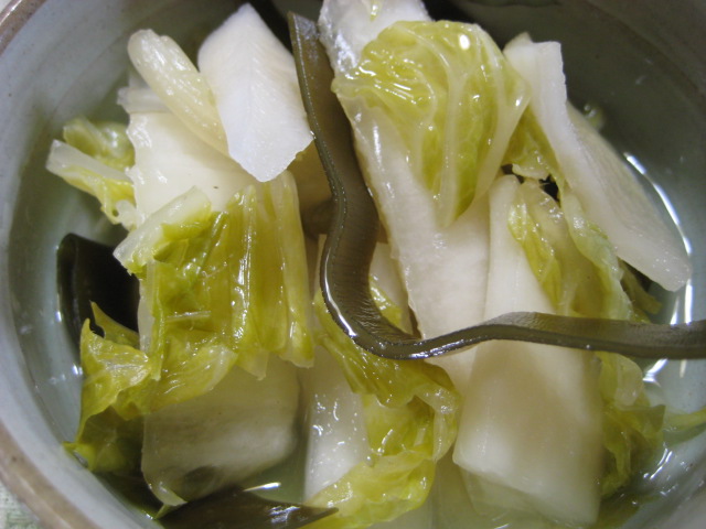 何よりいいのが、赤いキムチのようにそれ用の材料をあれこれ揃える必要がないってこと。家にあるものだけで作れます。それを準備して漬け込んだら、あとは乳酸発酵するのを待つだけ。