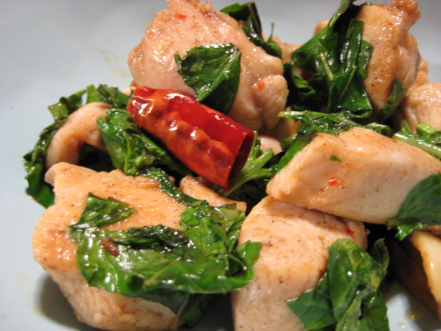以前タイ料理店で鶏肉とバジルの炒めものを食べて美味しかったので、あんな感じで作ってみようと思い出しながらやってみました。本来ならタイの唐辛子とかなんですが、あくまで節約レシピなので鷹の爪で。バジルは春に蒔いた種が順調に育ってるので、剪定を兼ねてたくさん切りました^^