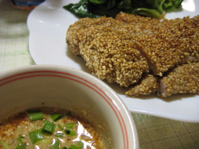 この料理だとゴマがたくさん摂取できるのでいいですねー。香りが食欲をそそりますし、もも肉でなく油の少ない胸肉なのでそれがかえって脂っこくなくて食べやすかったですよ。