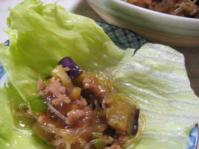 - 07/30 *茄子と豚挽き肉と春雨の甘味噌炒めレタス包み