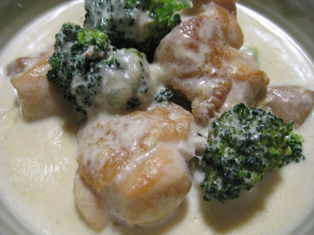 冷蔵庫に牛乳と生クリームが残っていたのと、今日の特売品が鶏肉とブロッコリーだったので、即決で決めました(笑)