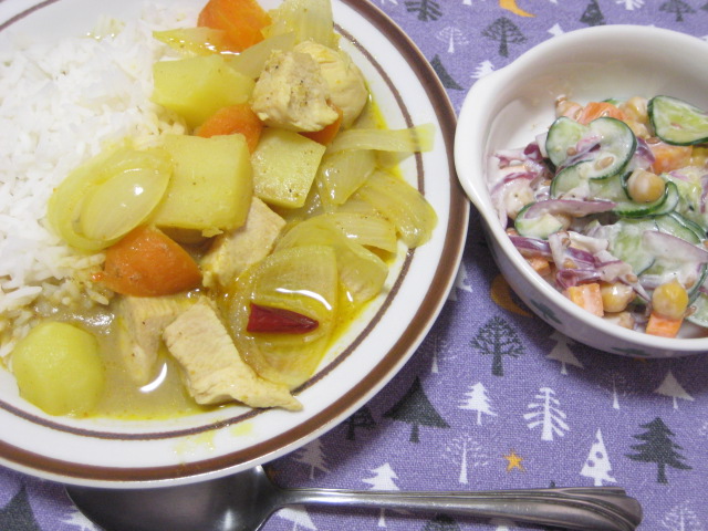 副菜はヒヨコ豆のヨーグルトサラダで。