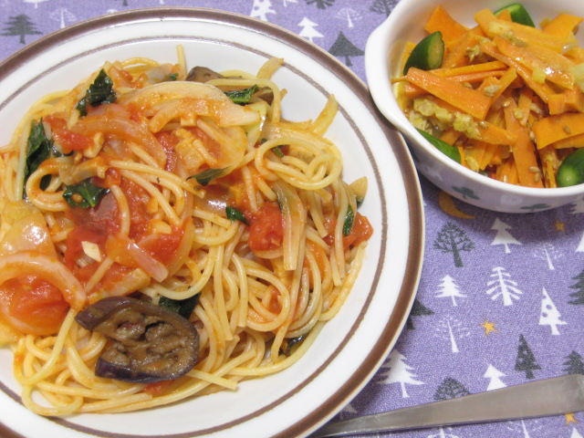 昨日の夕飯(9/20):トマトとバジルのパスタ他
