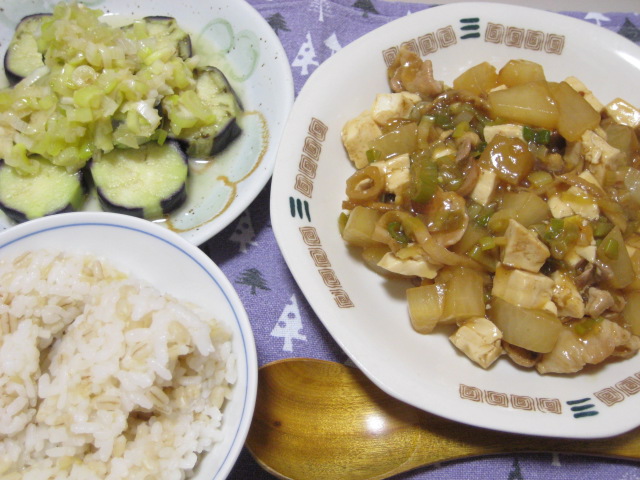 夕飯。当初はマーボー豆腐を考えてたんですが、朝から野菜不足気味だったので、大根をプラスすることにしたんですが、じゃあ甘辛い方が美味しいかなと考えた結果、こうなりました。