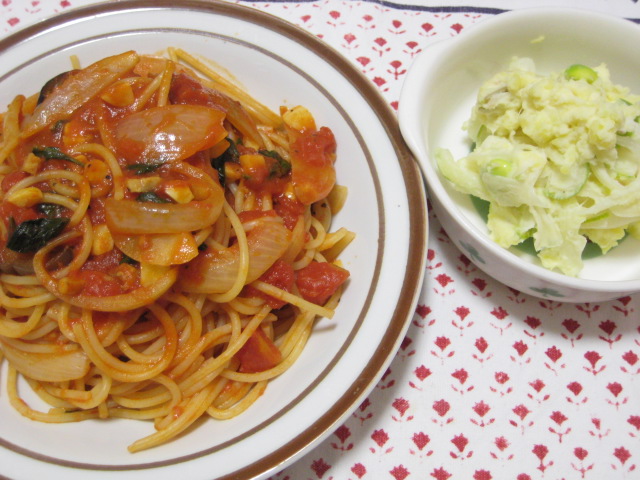 昨日の夕飯(8/27):トマトとバジルのパスタ他
