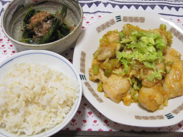 副菜は空芯菜のおひたし。空芯菜の葉って柔らかいので、炒め物にしてしまうより、加熱するならおひたしにした方が好みです。