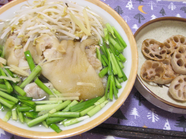 たまたまスーパーで豚足を見かけて、無性に食べたくなったのですが、どうせなら一度やってみたかった豚足のせの麺を作ってみることに。麺は去年ベトナムで購入したフーティウの乾麺があったので、それを使用。米麺ですが、フォーよりもコシがあるので、私はこっちの方が好みですね。スープは豚足に被るくらいの水で煮込んでからフーティウ用のキューブで味付け。具はシンプルにもやしとニラで。