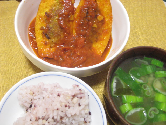 昨日の夕飯(5/4):厚揚げの挽肉詰め他