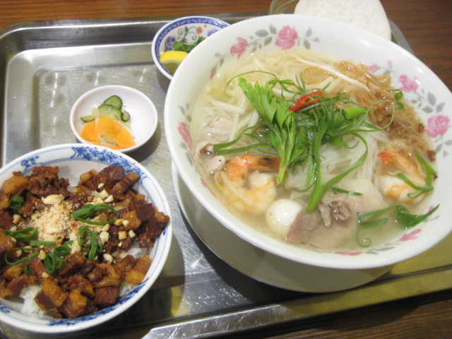で、頼んだのがフーティウ。去年ホーチミンへ行った際に一番の心残りがこれを食べそびれたことだったんですよねー。折角南部に行ったのにね!そんなこともあっていただいてきました。日本人の自分としては、やはり麺は腰があった方が美味しく感じるので、フォーよりもフーティウなんですよねぇ…