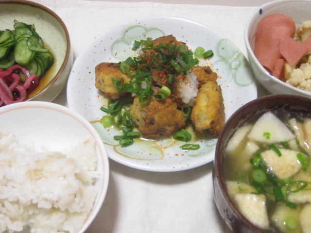 昨日の夕飯(4/21):厚揚げのニョクマム漬け他