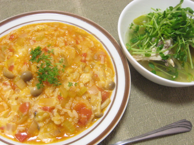 ご飯の冷凍ストックがほとんどなかったので、この日のリゾットは生米から。生米からだとどうしても時間がかかる…圧力鍋を使えば解決するんだろうけど、試したことないなぁ(苦笑)