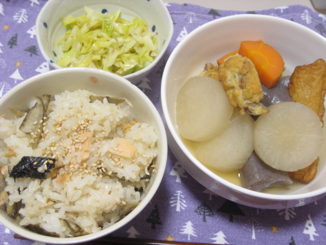 - 04/04 昨日の夕飯(4/3):塩鮭とゴボウの炊き込みご飯他