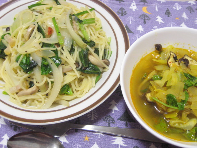 - 04/05 昨日の夕飯(4/4):ホウレンソウ入りペペロンチーノ他