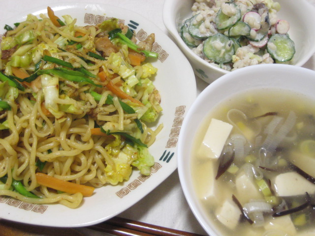 昨日の夕飯(3/19):塩焼きそば他