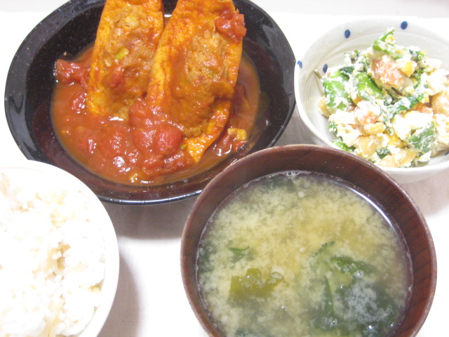 昨日の夕飯(3/20):厚揚げの肉詰めトマト煮込み他