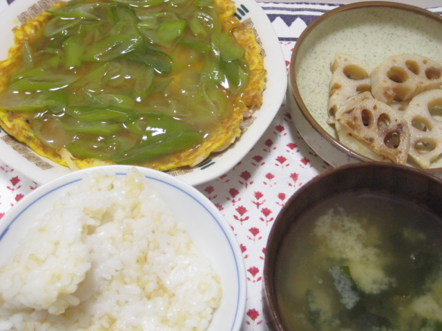 昨日の夕飯(3/4):切り干し大根のあんかけ卵焼き他