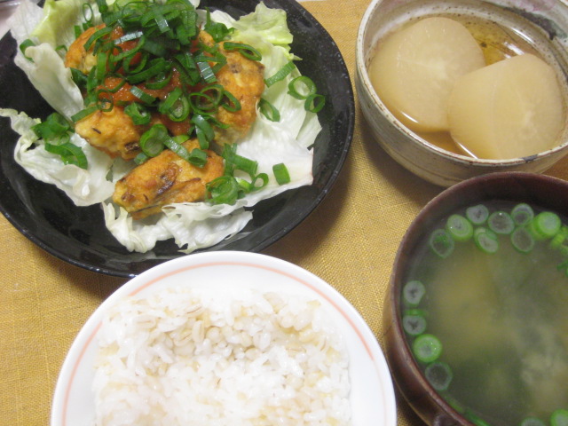 昨日の夕飯(1/31):鶏ゴボウ団子のもみじおろしがけ他
