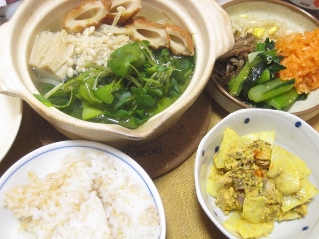 昨日は朝から野菜が全くと言っていいほど食べられなかったので、夕飯は家にある野菜類を使って鍋に。鍋スープの買い置きがなかったので、白だしベースですが、何も問題なし。まぁ、節分だったことをスーパーに行って思い出したんですが、恵方巻だと野菜不足過ぎるんで、今年はパスです(苦笑)