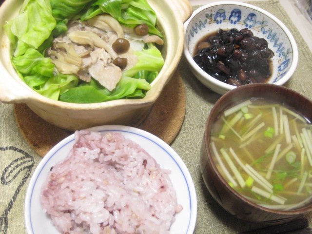 昨日の夕飯(1/15):キャベツと豚肉のバター蒸し他