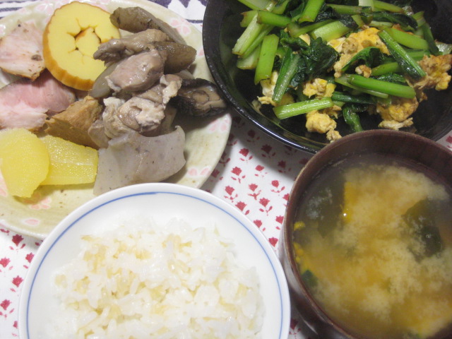 昨日の夕飯(1/2):小松菜と卵の炒め物他