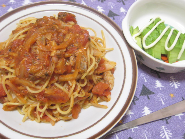 昨日の夕飯(1/10):トマトと鯖のパスタ他